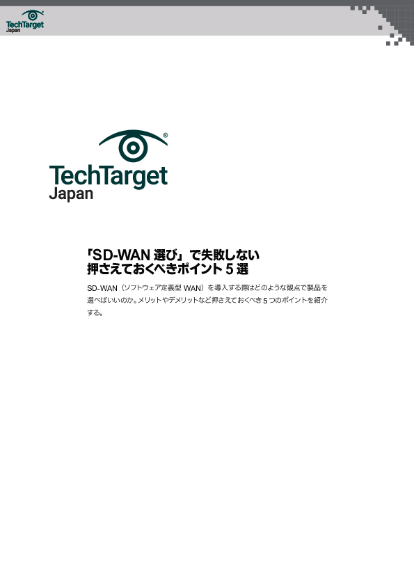 SD-WAN(ソフトウェア定義型WAN)を導入するに当たっては、利用で生じるメリットやリスク、ベンダーの選定と、検討すべきポイントがある。SD-WAN製品選定で失敗しないための評価ポイント5つを紹介する。